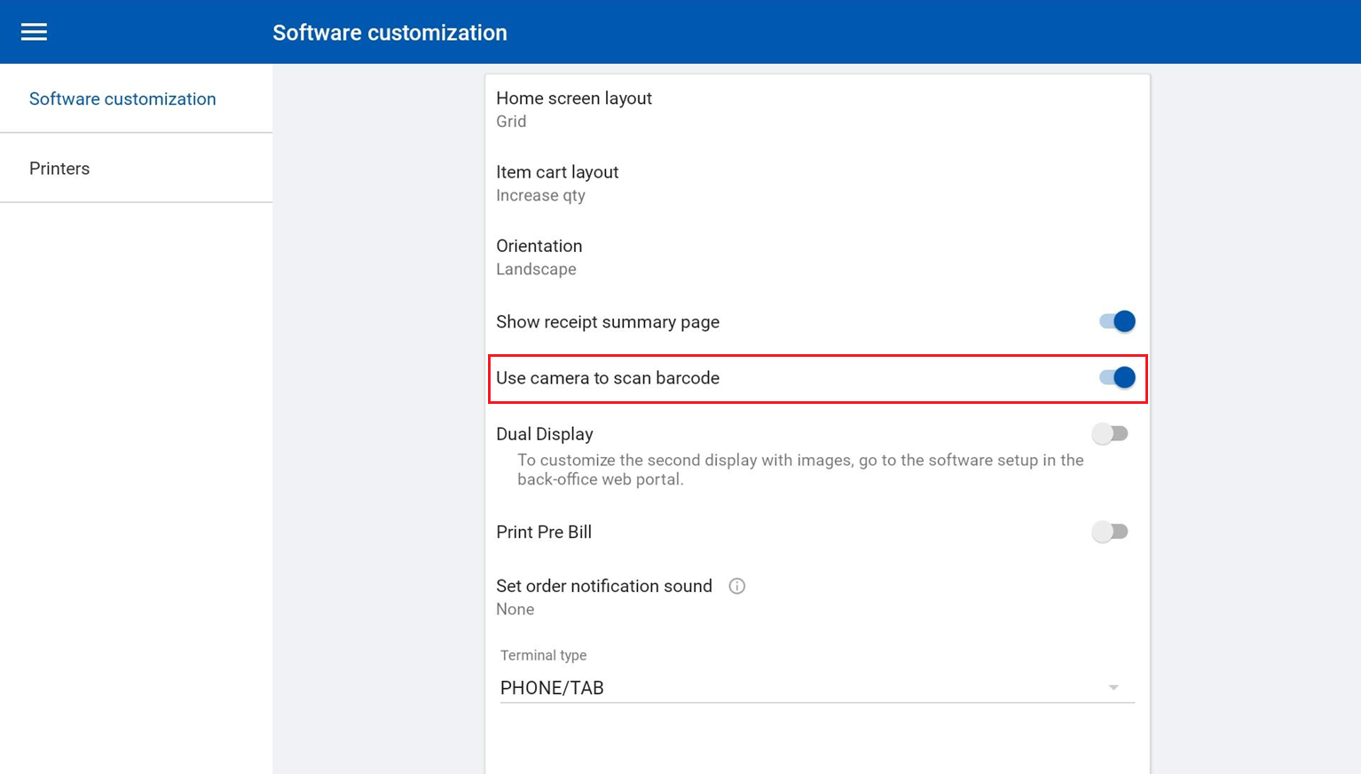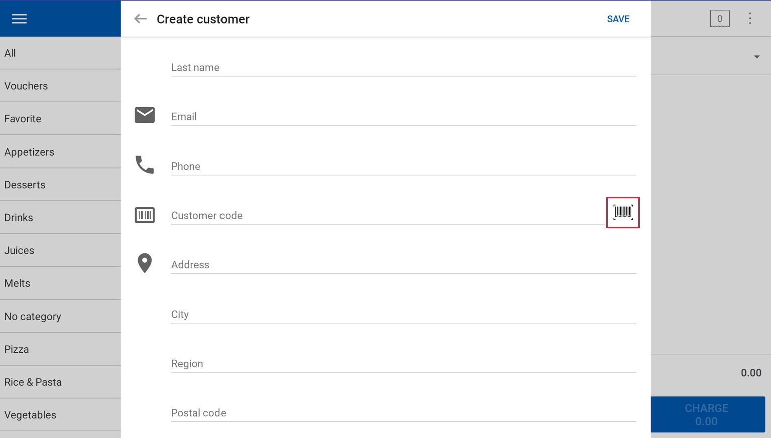 4. Scroll down and tap the Barcode icon next to the Customer Code field.