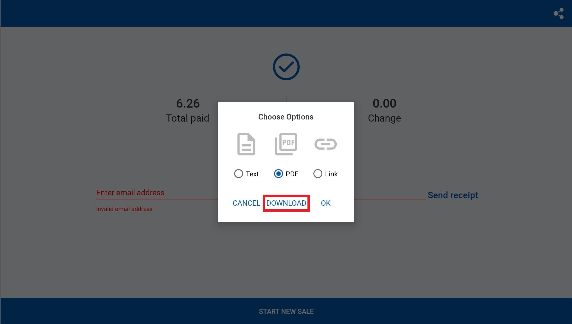 3) The downloaded receipt will be saved in the "Downloads" folder on the POS device.