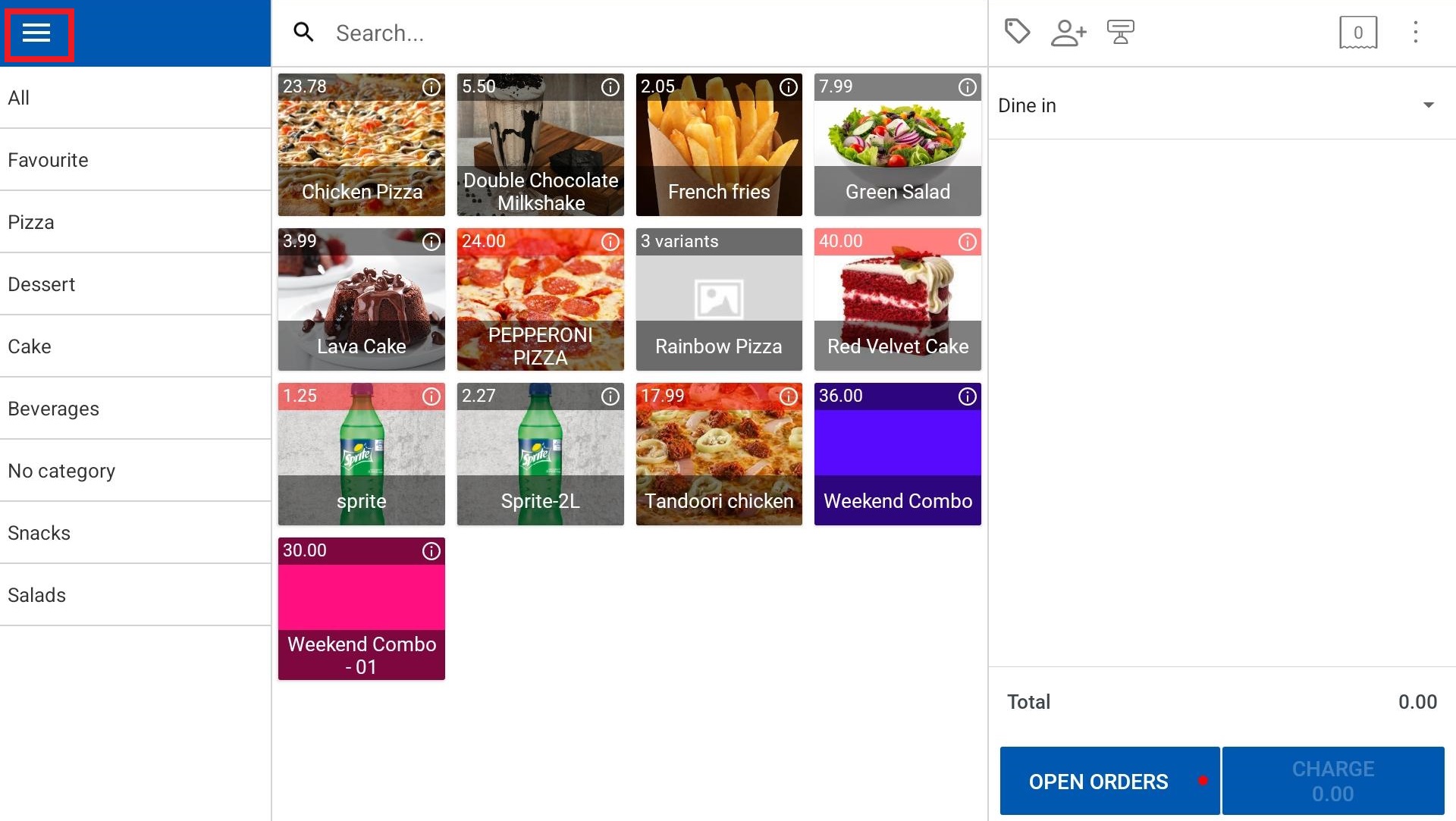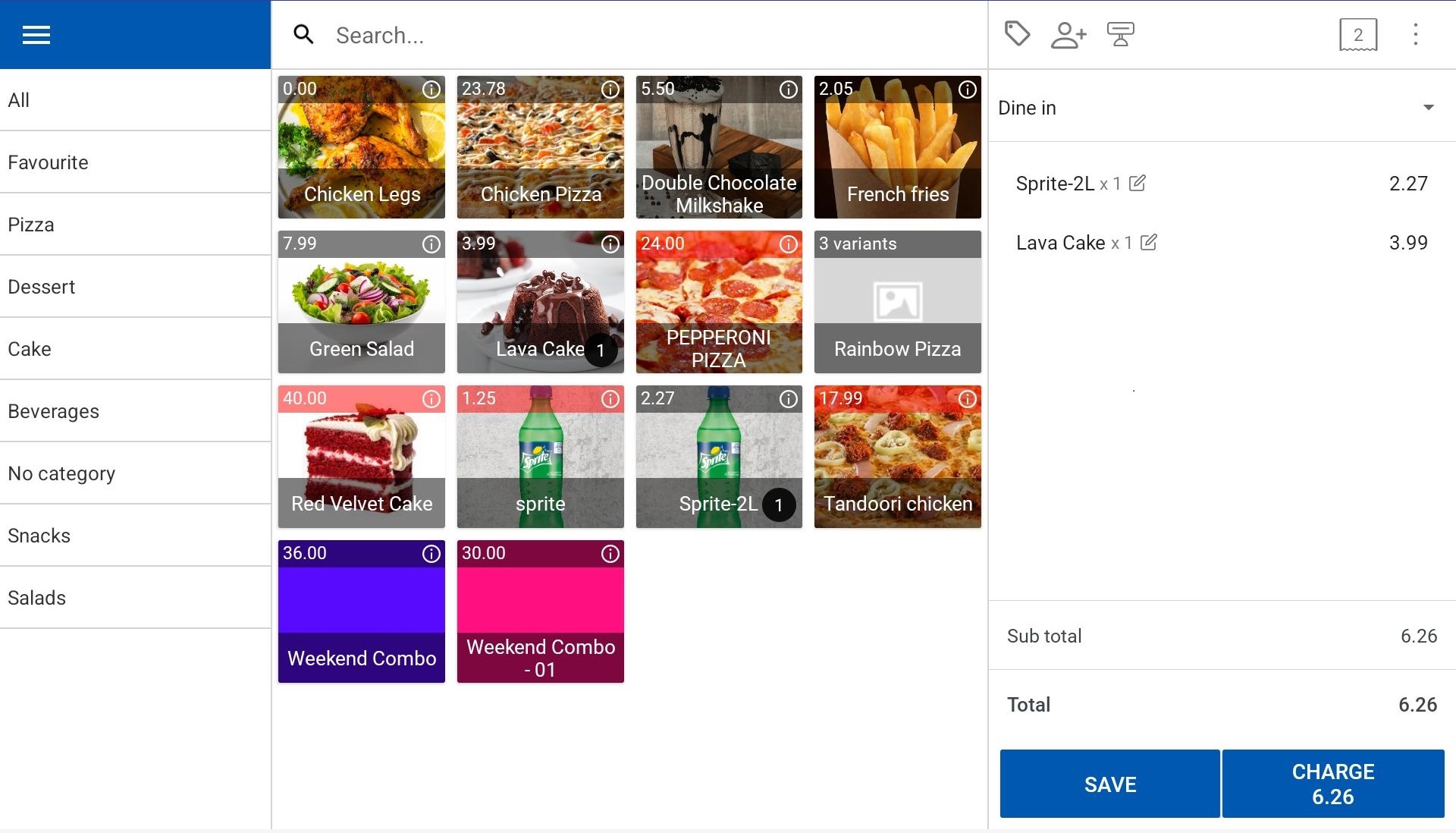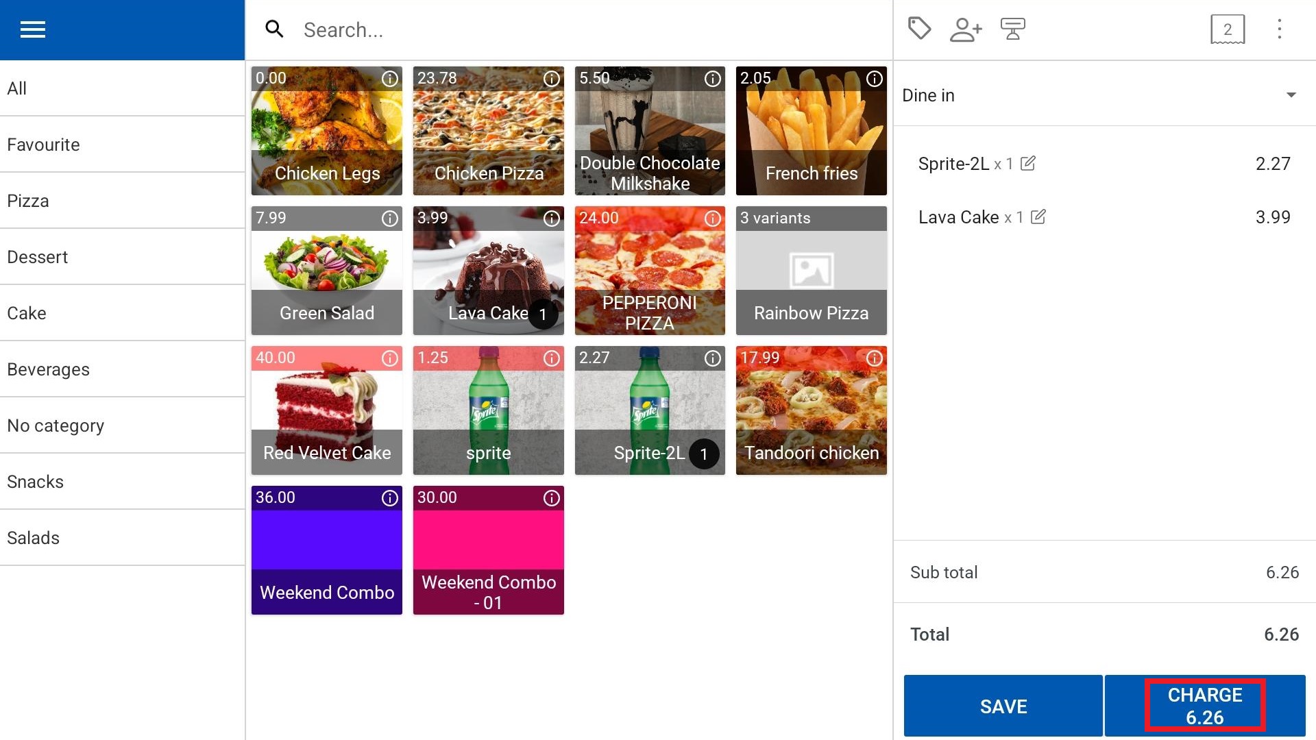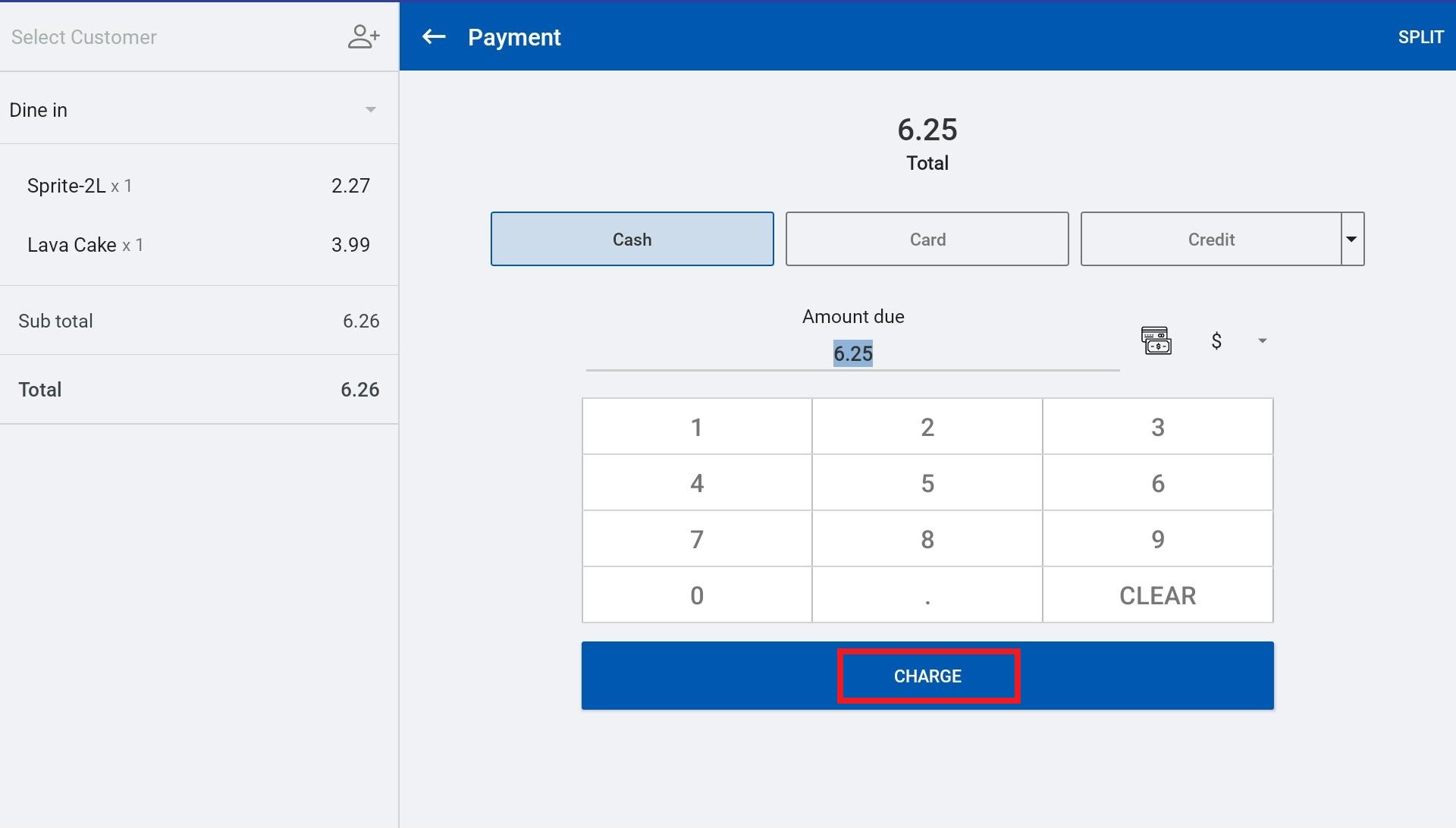 4) Once all items are selected, click the "Charge" button to proceed with payment.
